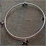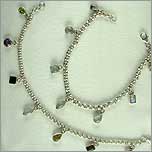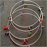 Silver bangle with hanging beads in amethyst, peridot, carnelian or black onyx |